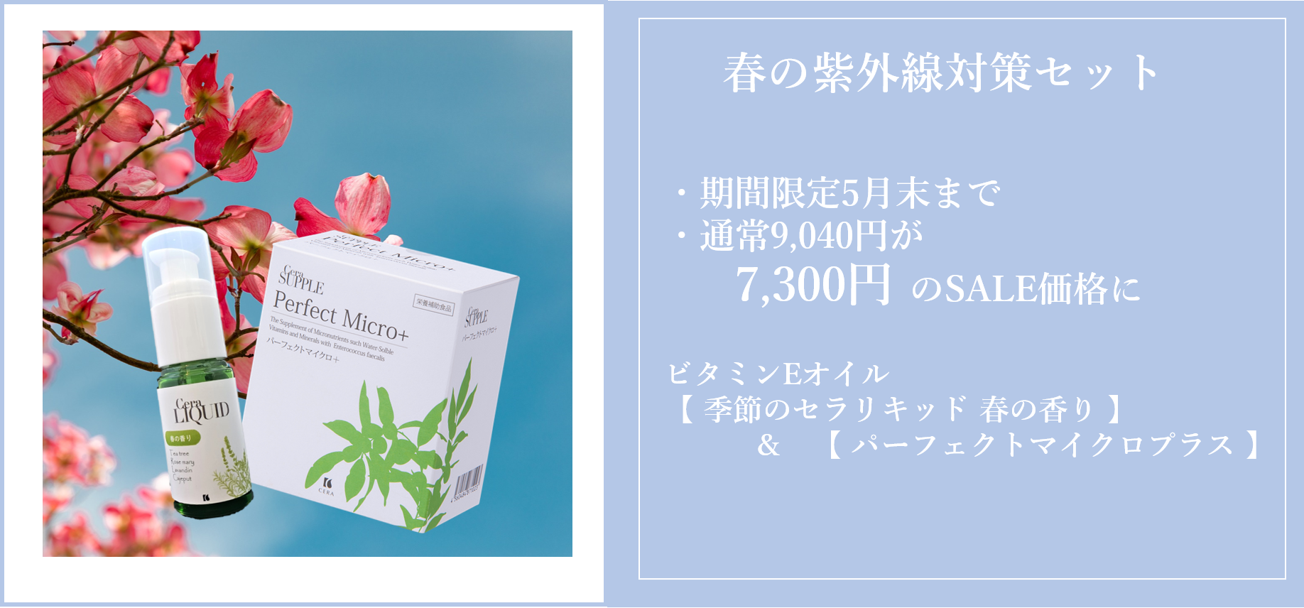 ビタミンEオイル「セラリキッド 春の香り」&「パーフェクトマイクロプラス」のセットです。