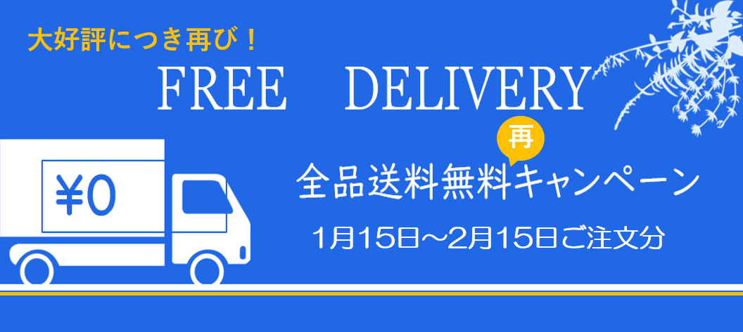 上記期間中、全商品送料無料でご注文いただけます。