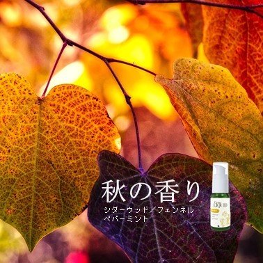 秋の森を歩いているかのようなウッディーな香りの“シダーウッド”、ほんのりスパイシーでありながら優しい香りの!“フェンネル”、清涼感のある“ペパーミント”。