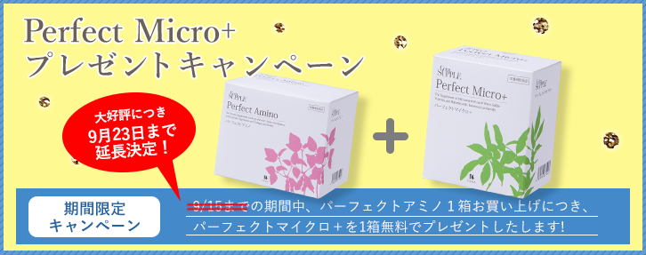 好評につき延長!9/23まで!パーフェクトアミノを買うとパーフェクトマイクロ+が無料でもらえる!