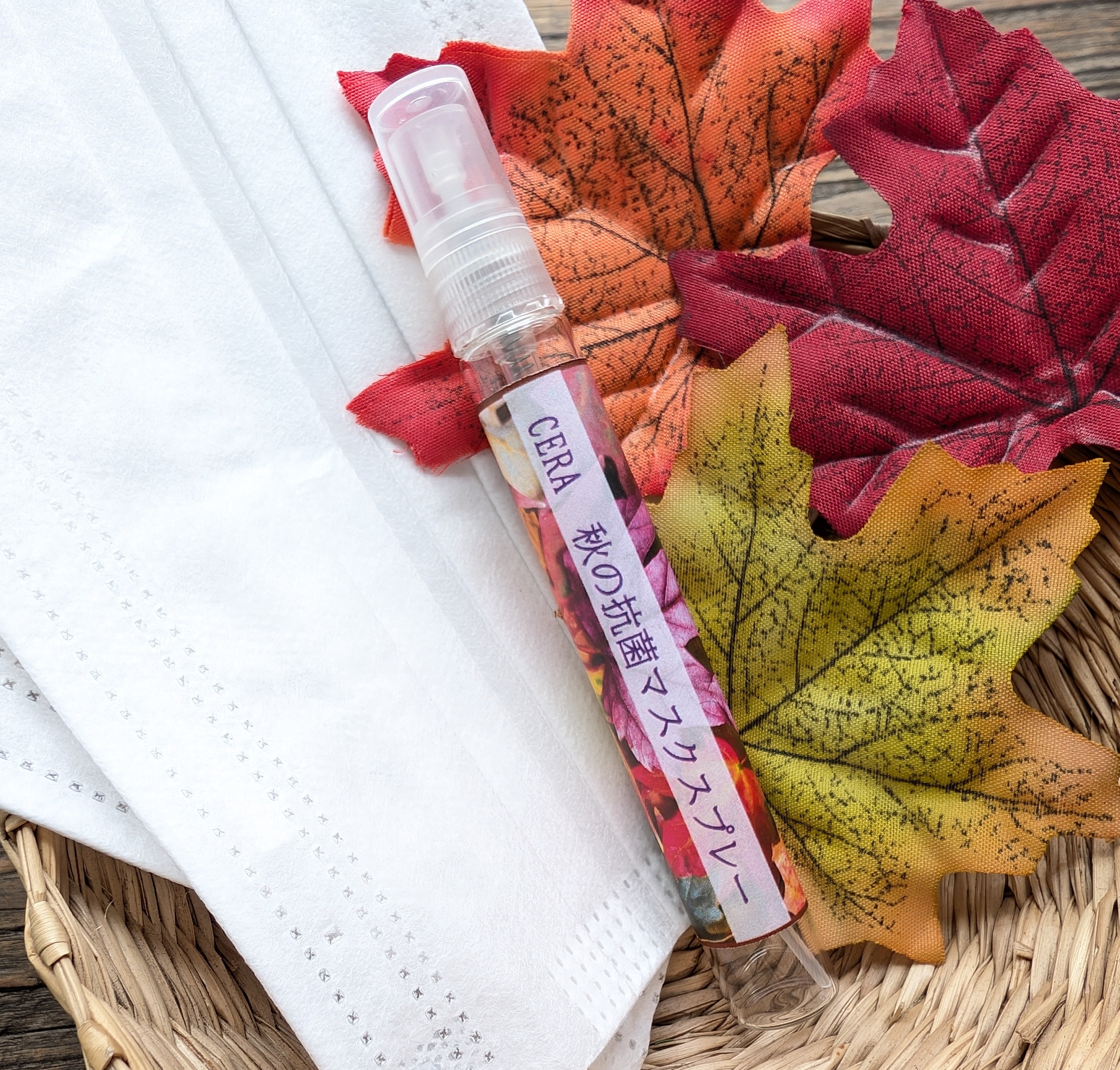 季節のセラリキッド「秋の香り」20mlをお買い上げの方に、天然アロマ100%マスクスプレーを1個プレゼント中です。